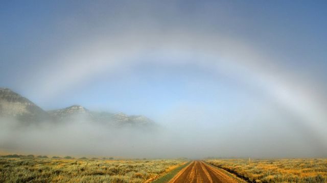 Овој прекрасен природен феномен – што може да го видите на сликата погоре, се нарекува бело или магливо виножито. Како и „обичното“ виножито се јавува кога сончевите зраци се прекршуваат низ малите водени капки во атмосферата, но бидејќи капките од маглата се помали од водените капки, боите не се забележуваат.
