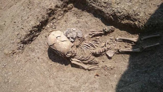Овие необични остатоци научниците биле откриени во близина на селото Јаковенково во источниот дел на Кримскиот полуостров. Се смета дека гробот датира од вториот век, додека детето било на возраст од колу 1,5 години.