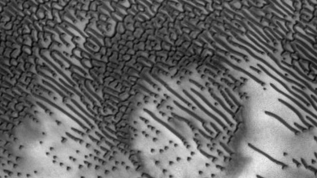 НАСА забележа низа чудни темни дини на Марс кои изгледаат необично како точки и цртички од Морзеовата азбука.