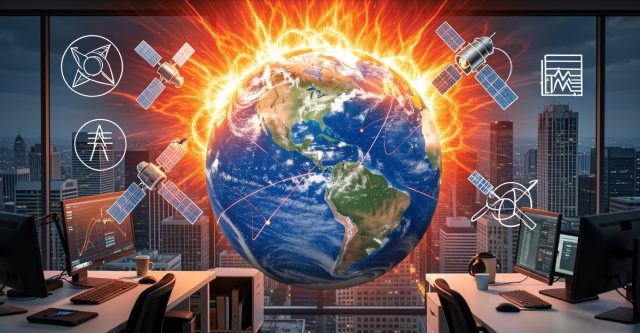 Вселенското време ги опфаќа ефектите од соларни ерупции, коронални исфрлања на маса и енергетски честички врз Земјата. Во вакви услови можни се нарушувања на сателитските услуги, GPS-системите, електроенергетските мрежи и делови од воздухопловството. Дел од овие појави се рутински и управливи, но најсилните сценарија се ретки и потенцијално многу поскапи.